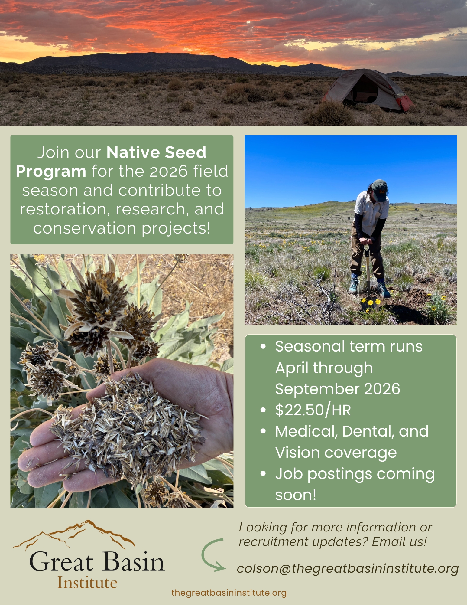 [SOS-PCA] Job oppty: Great Basin Native Seed Program- 2026 SOS Field Tech